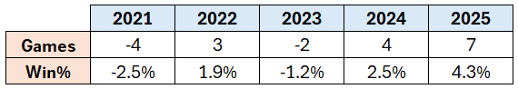 These are certainly considerations on the margin, and that may seem like irrelevant minutiae, decision points that might only nudge the team’s win probability a few percentage points one way or the other. But when you look at the actual margins that separate teams at the end of the season, you see how slim these margins actually are. Here are the number of games, and the difference in winning percentage, that the Padres either made or missed the playoffs by for the past five seasons: