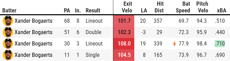 Xander Bogaerts saw the ball very well all day, including hitting the ball hard in all three at bats against Skubal: