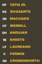 Fernando Tatis Jr led off, after mostly hitting lower in the order in the pre-season. Though he would be retired on a check swing roller, there were some encouraging signs: