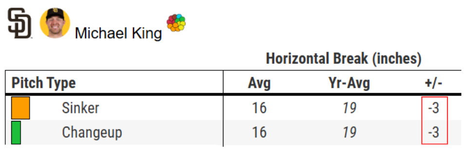 Spring training is held in the arid Sonoran desert, and the atmospherics will have some explanatory power for differences in pitch shapes. But this will be something to watch as King returns to Petco, and seeks to return to form.