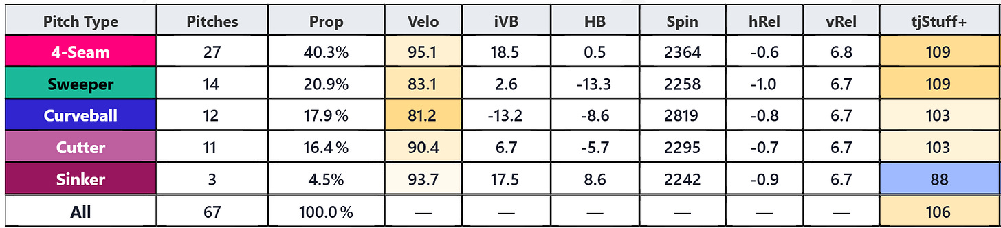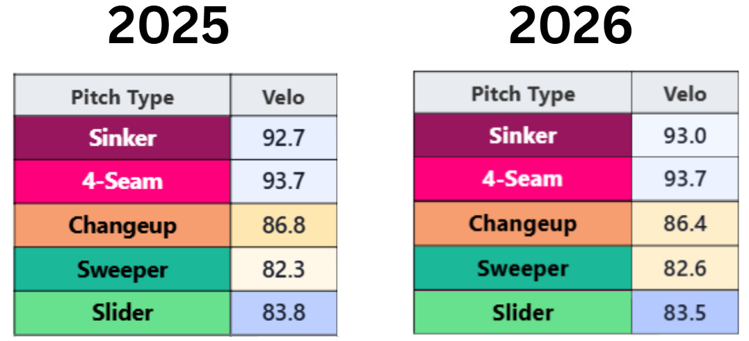 Still, he pitched five shutout innings in his final outing March 20th and his pitch velocities and shapes were nearly identical to his 2025 campaign.