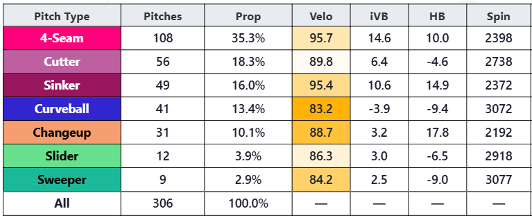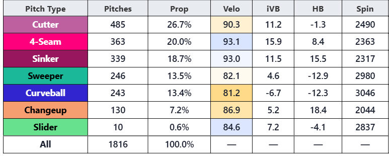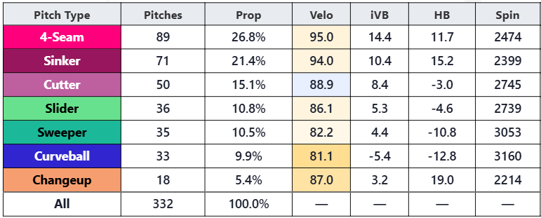 But his pitch shapes, even in his final start on March 19th, remain off from what he demonstrated in 2025. Especially the all important horizontal break on his sinker and changeup: