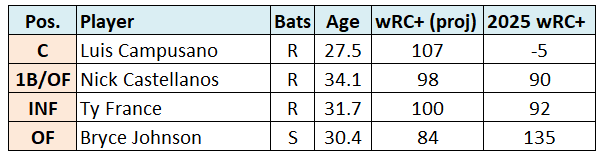 Ty France and Bryce Johnson provide legitimate multi-positional defensive depth and can take non-embarrassing major league at bats.