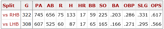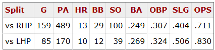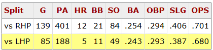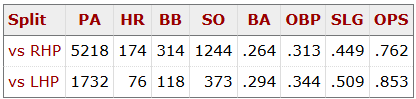 In fact his entire career has been built on feasting on left handed pitching: