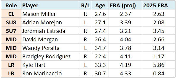 A lot will hinge on whether David Morgan and Bradgley Rodriguez can harness their outstanding arm talent and become true, reliable, setup arms. Both can be overpowering at times. But neither has the pedigree of sustained success at the major league level in high leverage duty.